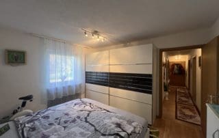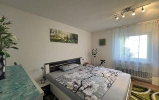 Das geräumige Schlafzimmer verspricht erholsame Nächte und bietet ausreichend Platz für Kleiderschrank und Co.
