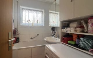 Das Badezimmer mit Tageslicht ist mit einer Badewanne und einem Waschmaschinenanschluss ausgestattet. Das WC ist separat und befindet sich somit nicht im Badezimmer.