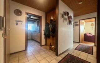 Gleich beim Betreten der hellen und südseitig gelegenen Wohnung wird man von einer angenehmen Atmosphäre empfangen. Rechts neben der Eingangstüre befindet sich eine Nische – ideal nutzbar als erweiterte Garderobe, Schuhschrank oder zum Verstauen von Putzsachen.