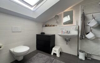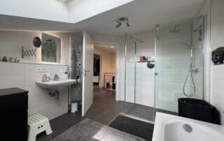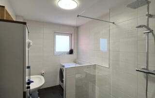Ein weiteres Highlight sind die hellen und schön gestalteten Tageslicht-Badezimmer. Das Badezimmer im 2. Obergeschoss ist mit einer bodentiefen Dusche ausgestattet; hier befindet sich auch ein Waschmaschinenanschluss. Falls dieser Bereich anderweitig genutzt werden soll, steht ein zusätzlicher Waschmaschinenanschluss im Keller zur Verfügung. Das Badezimmer im Dachgeschoss bietet mit bodentiefer Dusche und Badewanne höchsten Komfort. Aufgrund der beiden vorhandenen Badezimmer ist die Wohnung besonders familienfreundlich – so beginnt der Tag ohne Stress und alle kommen pünktlich aus dem Haus.