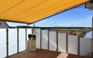 Wir verlassen den Wohnraum und gelangen wieder über den Flur nun zum groß angelegten und nach Süden ausgerichteten Balkon. Ruhe, Entspannung, Entschleunigung und schöne Momente bei herrlicher Aussicht sind hier garantiert.
