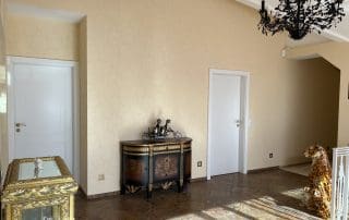 Trockenen Fußes gelangt man über die zwei nebeneinanderliegenden Garagen mit elektrischen Toren ins Haus. Einkäufe und Getränke bringt man dann gleich im angrenzenden Vorratsbereich unter. In der Garage ist bereits eine Wallbox für ein Elektroauto installiert. Zusätzlich bietet die Immobilie weitere 11 Pkw-Außenstellplätze, was definitiv ein weiteres Highlight ist.