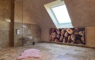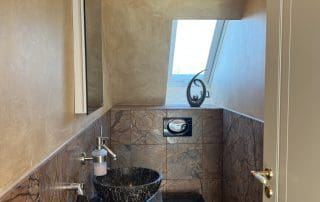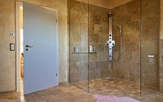 Auch das große Badezimmer mit bodentiefer, begehbarer Dusche darf definitiv als Highlight betrachtet werden. Zu guter Letzt, folgt das Schlafzimmer mit angrenzendem begehbarem Kleiderschrank.
