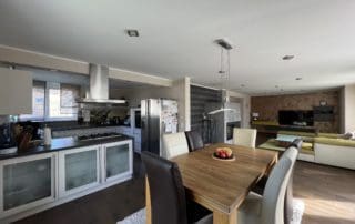 Nicht nur die Lage, sondern auch die Ausstattung dieser Immobilie überzeugt sofort. So wird man nach dem Öffnen der Haustüre, gleich von Helligkeit und einem positiven Gefühl begrüßt, zu Hause angekommen zu sein. Nur wenige Schritte die Diele entlang, gelangt man in den Hauptbereich im Erdgeschoss, dem großzügigen und offenen Wohn-Ess-Kochbereich. Von hieraus kann man das erste Mal die Helligkeit und die damit verbundene positive Wohn- und Lebensqualität durch die große, südseitig liegende Fensterfront so richtig genießen. Hier finden sich auch gleich zwei Highlights: Die schöne Küche mit hochwertigen Einbaugeräten, vielen Schränken und Stauflächen, lassen das Herz von jedem Hobbykoch gleich höher schlagen. Und dann haben wir im Wohnbereich noch den wunderschönen wasserführenden Kaminofen, ein wahrer Blickfang, der in den kalten Monaten wohltuende Wärme liefert und für knisternde Atmosphäre sorgt.