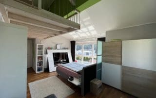 Im Dachgeschoss befinden sich 2 nebeneinanderliegende Zimmer, welche sich beispielsweise gut als Kinderzimmer eignen würden. Beide Zimmer sind gut und großzügig geschnitten. In einem Zimmer befindet sich zusätzlich noch eine Hochebene, welche bei Bedarf als Stauraum verwendet werden kann. Letztlich haben wir dann noch das Schlafzimmer mit begehbarer Ankleide. Die überdurchschnittliche Deckenhöhe im Dachgeschoss, verleiht den Zimmern nochmals das gewisse Etwas. Angrenzend zum Schlafzimmer, befindet sich das Hauptbadezimmer. Hier findet sich eine große, bodentiefe Dusche mit Abstellfläche für Hygieneartikel und wandhohen Fliesen, eine Badewanne sowie ein Bidet.