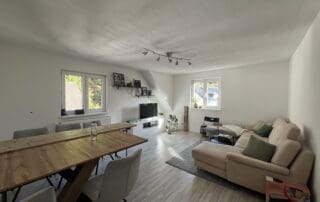 Insgesamt drei 4-Zimmer-Wohnungen (Erdgeschoss, 1. Obergeschoss sowie im Dachgeschoss) mit jeweils separatem Eingang, sind in dem angebotenen Mehrfamilienhaus beheimatet. Die Dachgeschosswohnung wurde in den letzten Jahren komplett renoviert, mit neuem Badezimmer und neuer Küche.