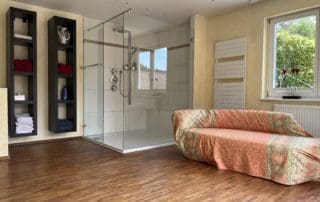 | Ausstattung Bäder | Tageslichtbad mit großer, begehbarer Dusche. Tageslichtbad mit Dusche und Badewanne. Tageslichtbad mit Dusche. |