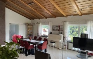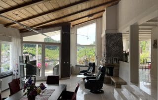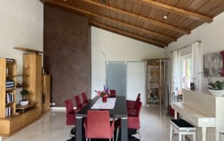 Ein weiteres Highlight dieser Immobilie ist die enorme Raumhöhe (bis 4,50 m) im benachbarten Wohnbereich, was dem Raum Weite und einen ganz besonderen Charme verleiht. Jeweils vom Wohnbereich und Küchenbereich aus, gelangt man auf die großen nach Süd-West ausgerichteten Sonnenterrassen, wo Ruhe, Entspannung und Entschleunigung sowie eine atemberaubende Aussicht garantiert ist. Dieser wunderschöne Platz wird sicherlich bei jedemBesucher in Erinnerung bleiben.