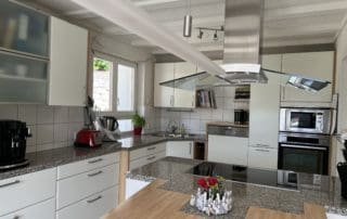 Die einst als Pension genutzte Immobilie, wurde im Lauf der Jahre zu einem exklusiven Wohnhaus um- und ausgebaut. Empfangen von einem wunderschön gestalteten Eingangsbereich, gelangt man in den großen und offenen Wohn-Ess-Kochbereich. Das enorme Platzangebot in der Küche mit vielen Schränken, Stauflächen und Sitzmöglichkeiten lassen das Herz eines jeden Hobbykoch höher schlagen. Die ursprüngliche Küche wurde zu einer großzügigen, offenen Wohnküche umgestaltet.