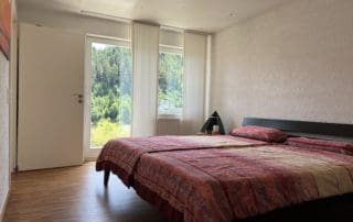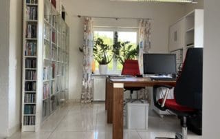 Vom Wohnbereich wurde im Laufe der Zeit ein Wanddurchbruch in das Zimmer 6 des ursprünglichen Plans vorgenommen, welcher heute mit einer Glasschiebetüre abgetrennt ist und als Arbeitszimmer dient. Im Zimmer 5 des ursprünglichen Plans, entstand ein Badezimmer und nebenan ein separates WC. Alle Fenster haben eine 2-fach-Verglasung und sind mit elektrischen Rollläden, teilweise mit Fliegengittern, sowie die Terrassentüren mit Schwingflügelfliegengitter versehen.